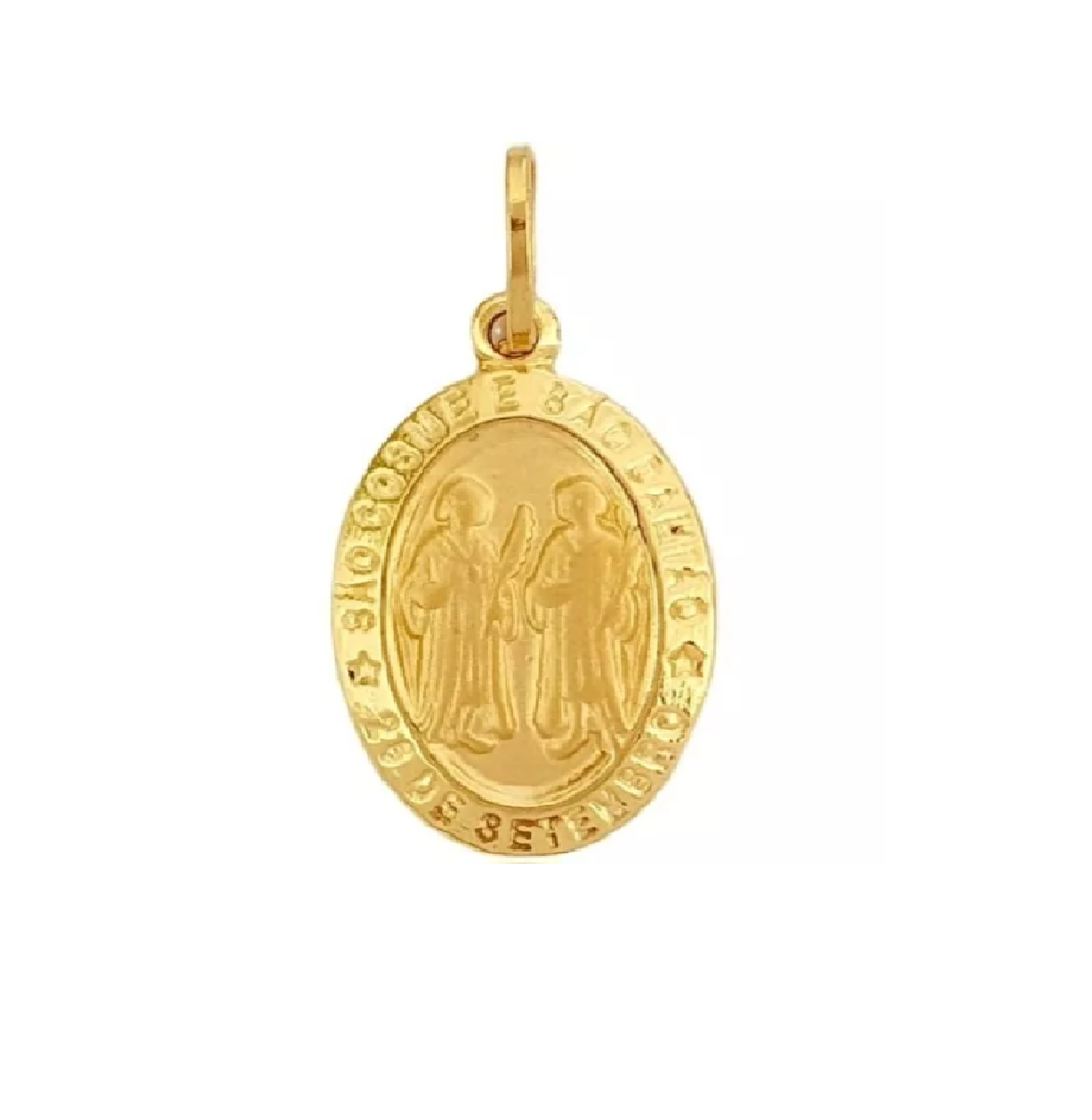 O medalhão de Cosme e Damião simboliza a fé que esses dois santos professavam: a fé em Jesus Cristo.