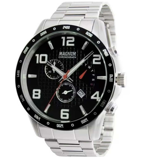 Relógio Masculino Magnum Cronógrafo Prata e Preto Ma35191t